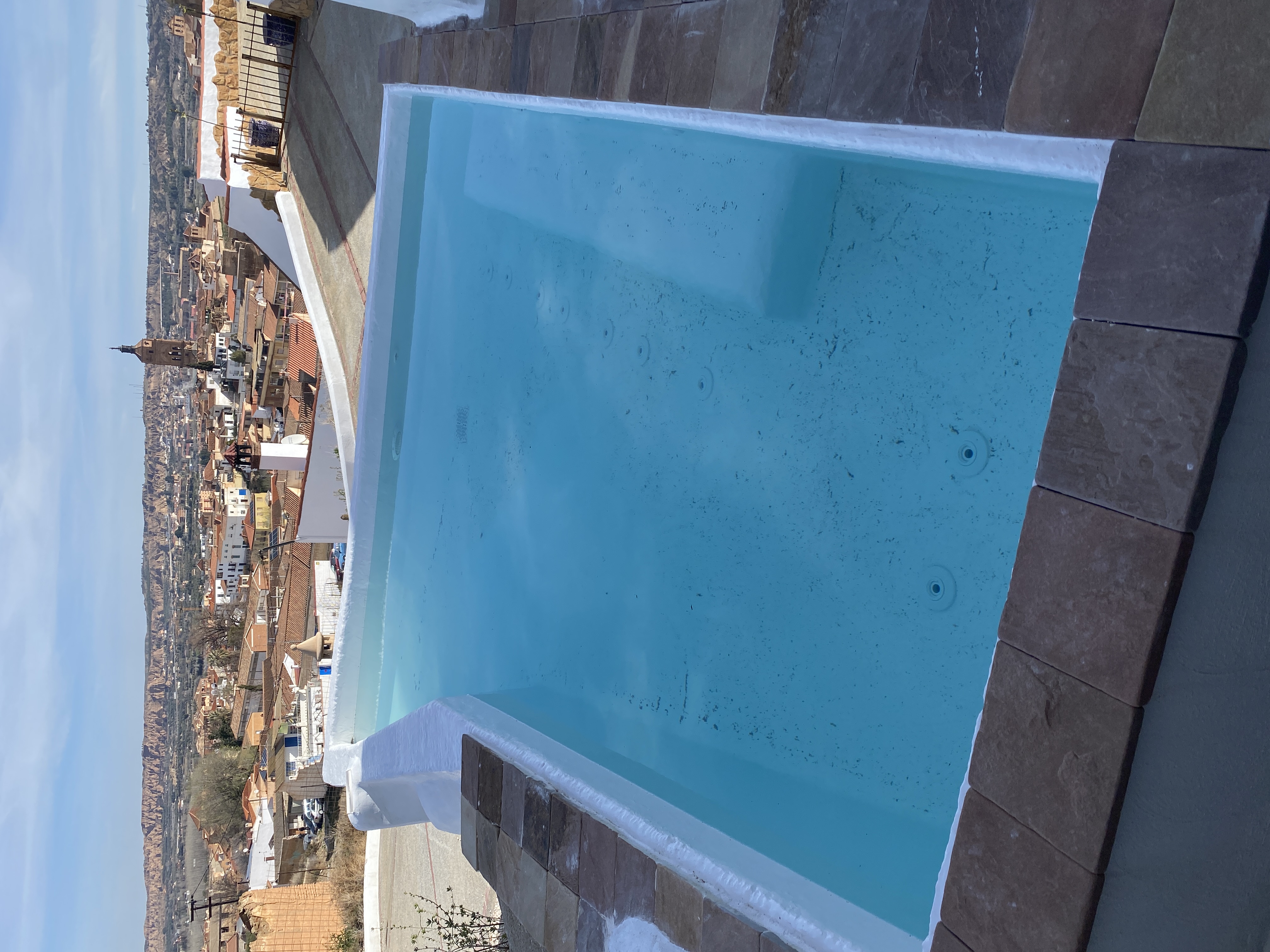 Nuestro complejo cuenta con piscinas privadas para dos de las cuevas y terrazas cenador con vistas panorámicas en cada una de ellas.